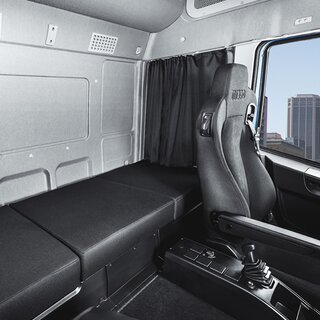 Hochwertig gestaltete Rückwand- und Deckenverkleidungen sorgen für ein angenehmes Ambiente. Auf Wunsch können luftgefederte „High-Comfort“-Fahrersitze verbaut werden. Neben den zahlreichen Verstellmöglichkeiten der Rückenlehne, dem höhenverstellbarem Sicherheitsgurt ist auch eine Sitzheizung/-lüftung integriert. Armlehnen werden bei allen pneumatischen Sitzen optional angeboten.